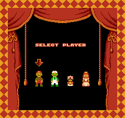 the original hack that adds a smb2 usa style character select screen to Super Mario Bros. this hack was taken down from romhacking.net after nintendo supposedly contacted them to remove it.