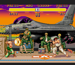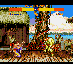 Stages largely based on Pyron’s work (especially Ken, ChunLi, and Vega’s stages, the bonus stages, and the people in Guile’s stage). In E. Honda’s stage, tiles from both Pyron and Lord Hiryu. Other tiles are also copied here and there. Improvements in all stages an endings.