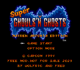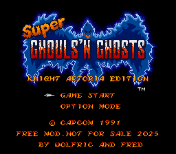 This is a Super Ghouls ‘n Ghosts (USA) sprite hack that changes Arthur’s sprites into those of a Maiden/Knight, Artoria.