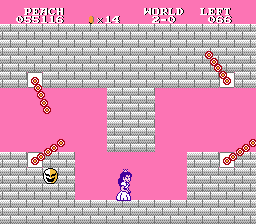 • Targeted difficulty of the levels was somewhere between SMB1 and Lost Levels, and the hack gets harder as you progress through it. But, the starting number of lives was increased to 15 and there is at least one hidden 1-up in every level, so the difficulty is eased that way