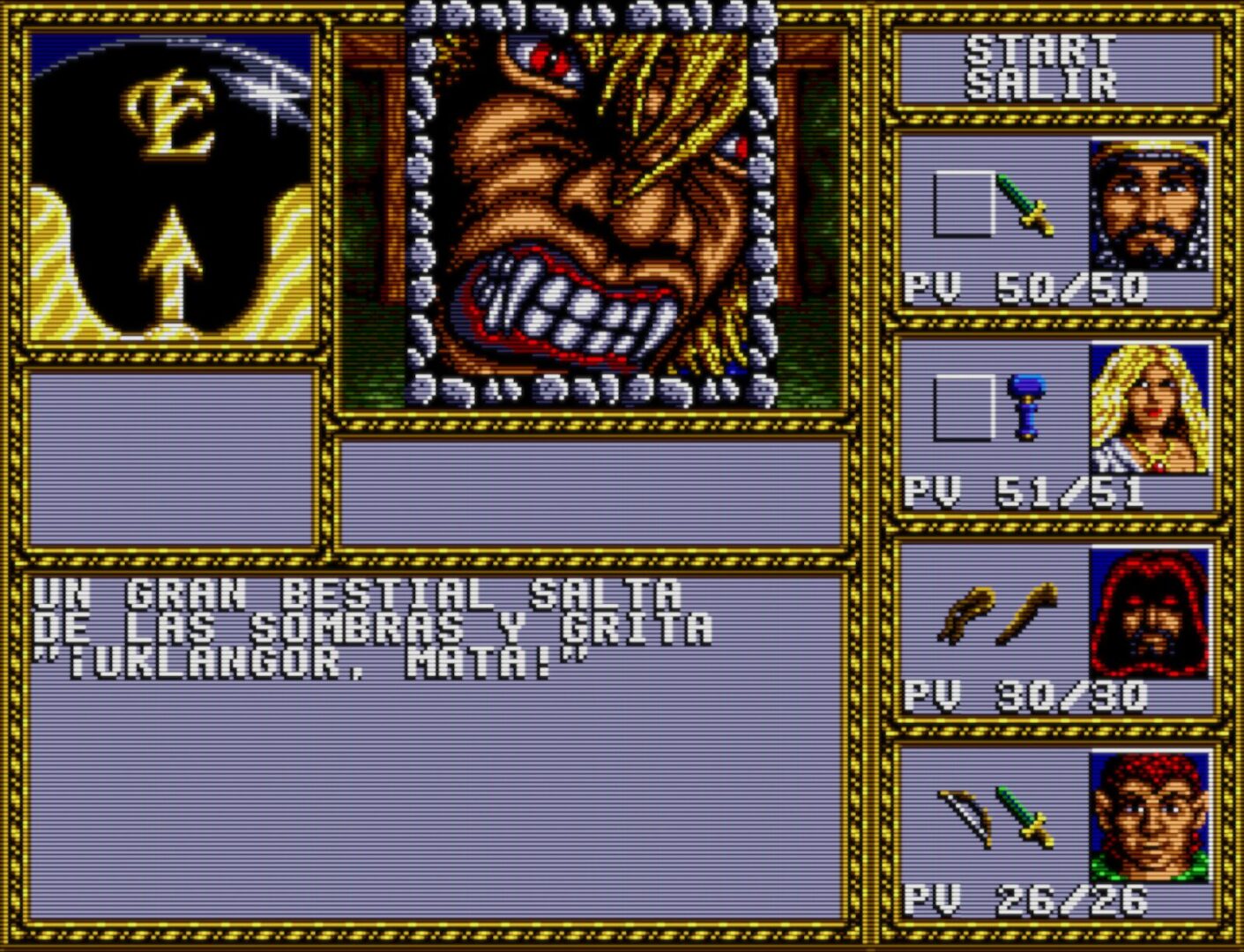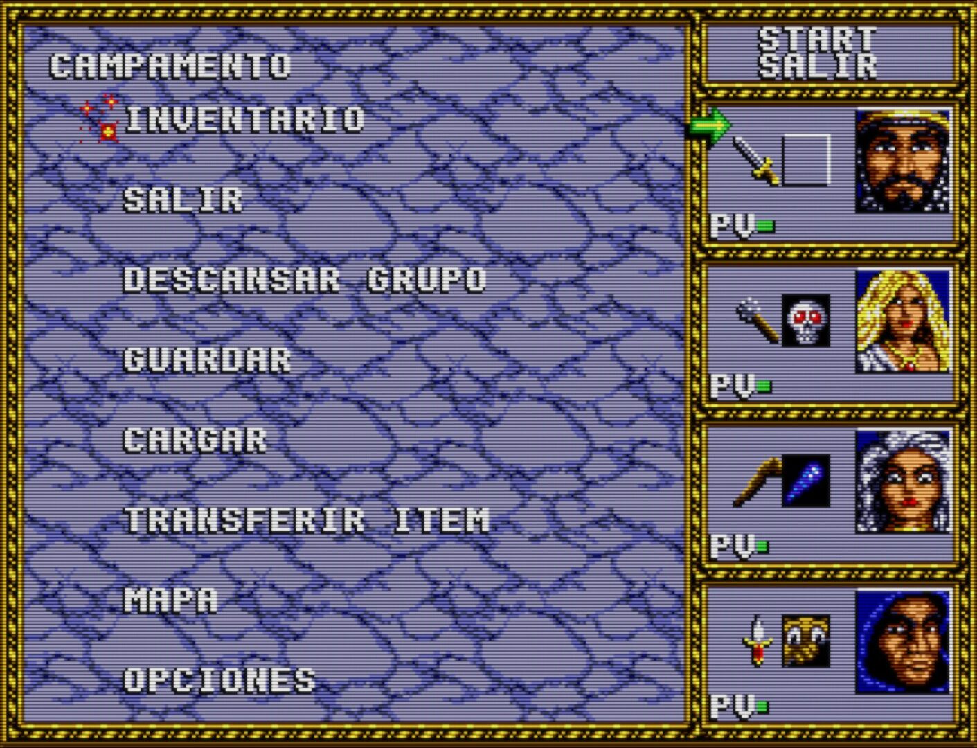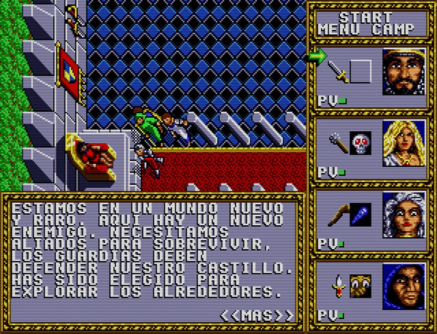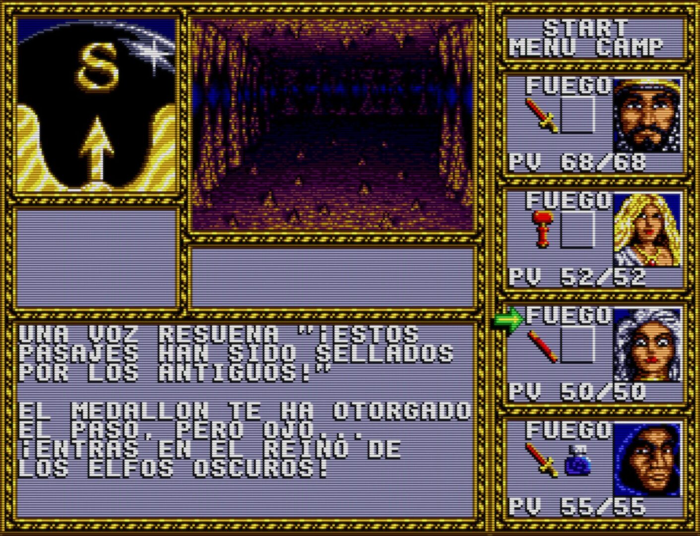 Spanish translation of Dungeons and Dragons – Warriors of the Eternal Sun for Sega Mega Drive.