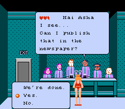 “Titanic Mystery: Ao no Senritsu” is an action-adventure game on the Famicom Disk System. In this game, you’re a CEO of a company in charge of raising the RMS Titanic from its resting place. Select one of three divers (whichever you choose has no effect on the game) and dive into the Titanic wreckage to pull out artifacts which you can sell to investors while, at the same time, find a way to raise the doomed ship from its oceanic grave.